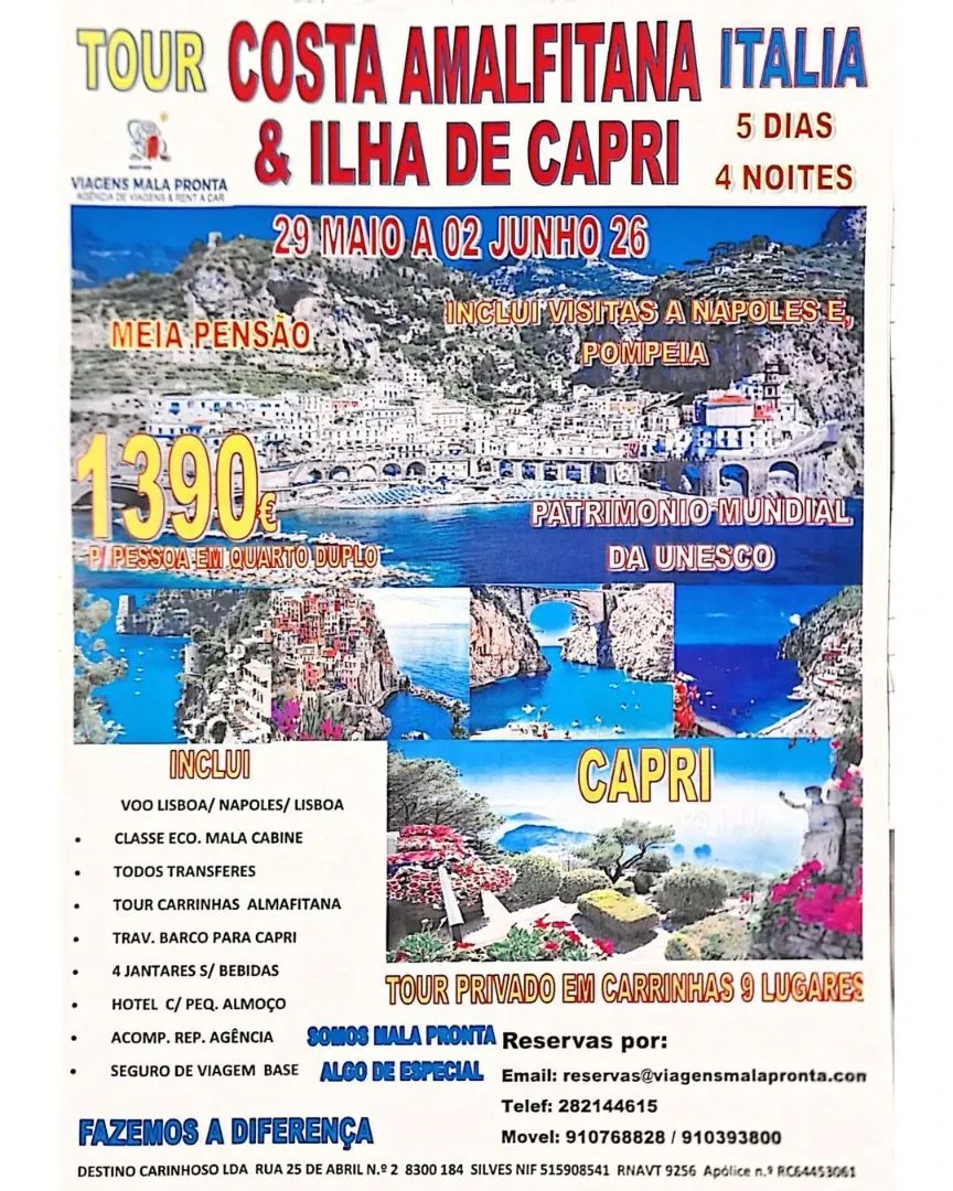✅ Voos + transfers + hotéis + jantares + barco para Capri